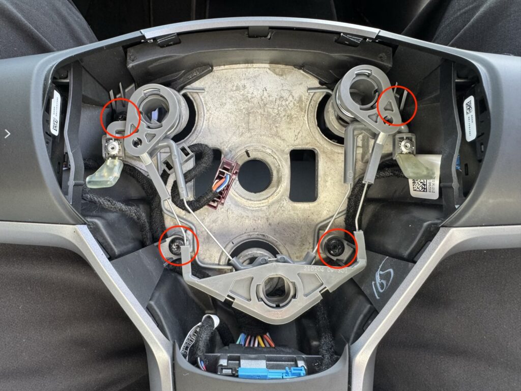 エアバッグを持ち上げると配線が見えるので、